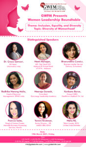 The Global Workforce management(GWFM) organized a roundtable discussion with senior women leaders across APAC, ANZ and EMEA on 19th March 2021. The topic for the discussion was “Diversity of Womanhood”.